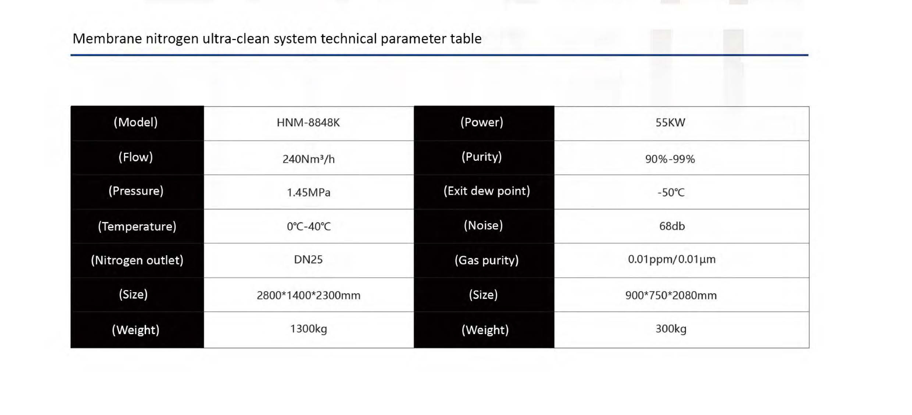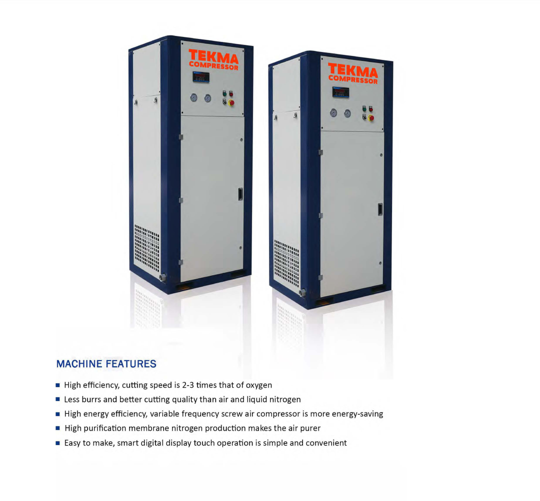 The membrane separation nitrogen making system consists of an air compressor, air pretreatment and membrane separation nitrogen making machine. It produces nitrogen with a purity of 90-99% and a rated air production of 110Nm3/h