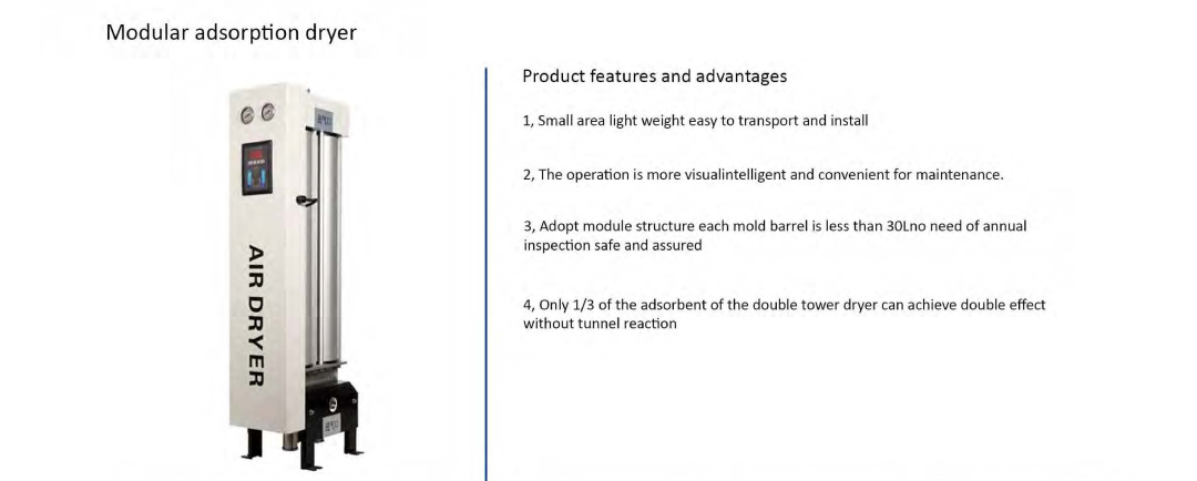 Pengering udara ini menghilangkan kelembapan dari sistem dengan efisien menggunakan desain modular yang ringkas dan ringan. Dengan konsumsi adsorben yang lebih hemat kurang dari 30Lno setahun, instalasi dan perawatan jadi lebih praktis.